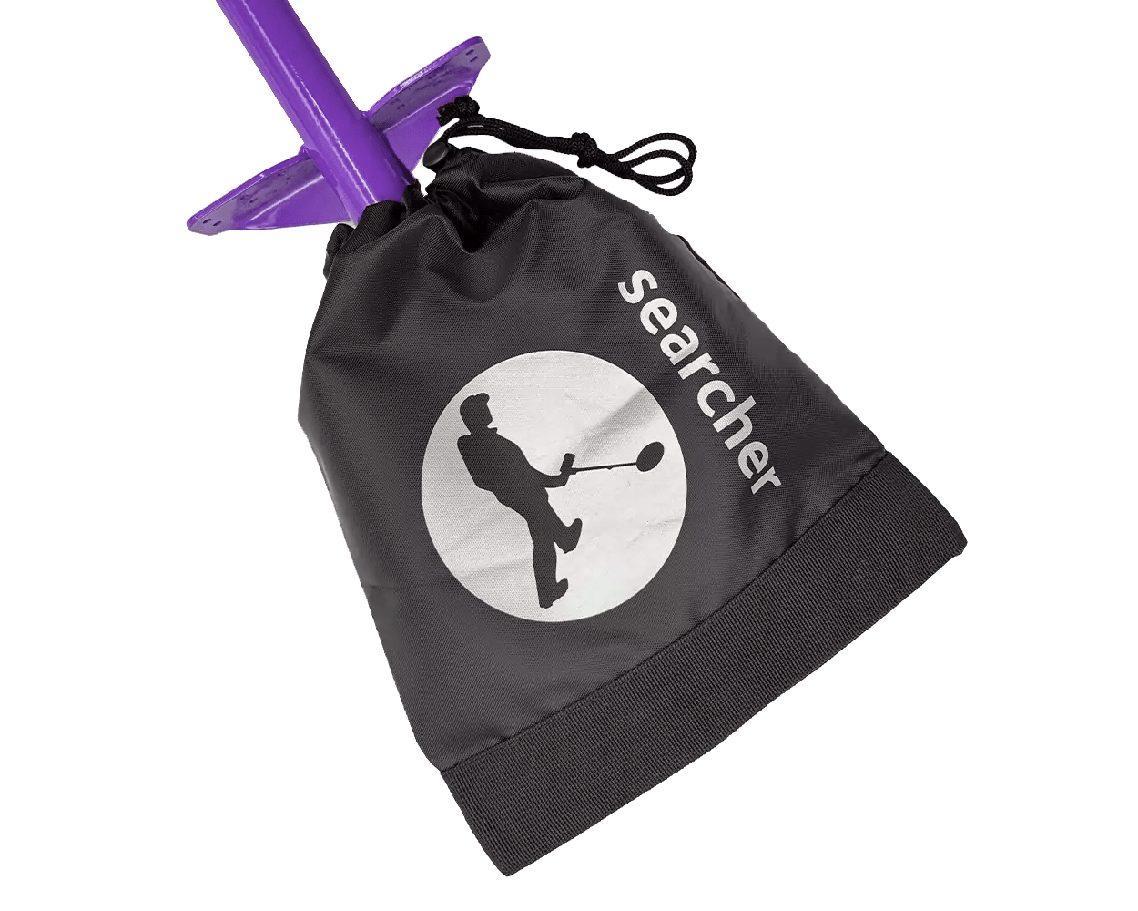 Protective bag for spade blade with printed Searcher Logo.